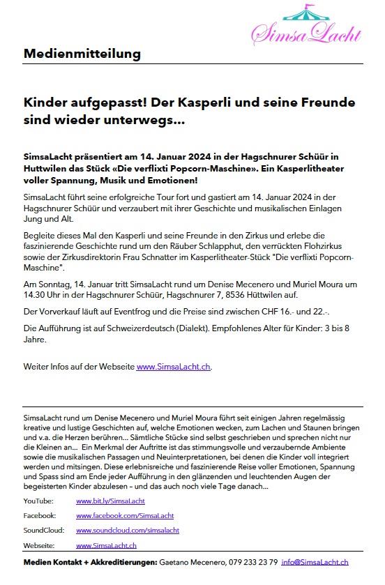 Kasperlitheater am 14. Januar 2024 in der HagschnurerSchüür