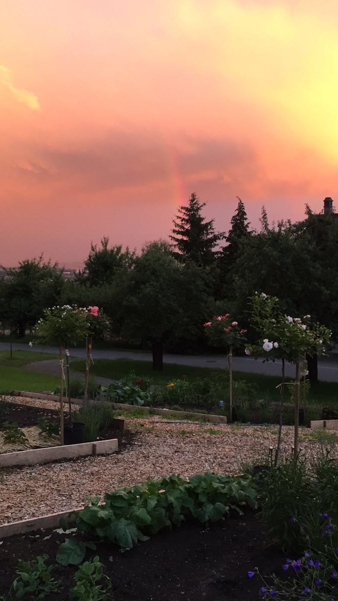 Heubodenzimmer mit Hotpot unter den Obstbäumen