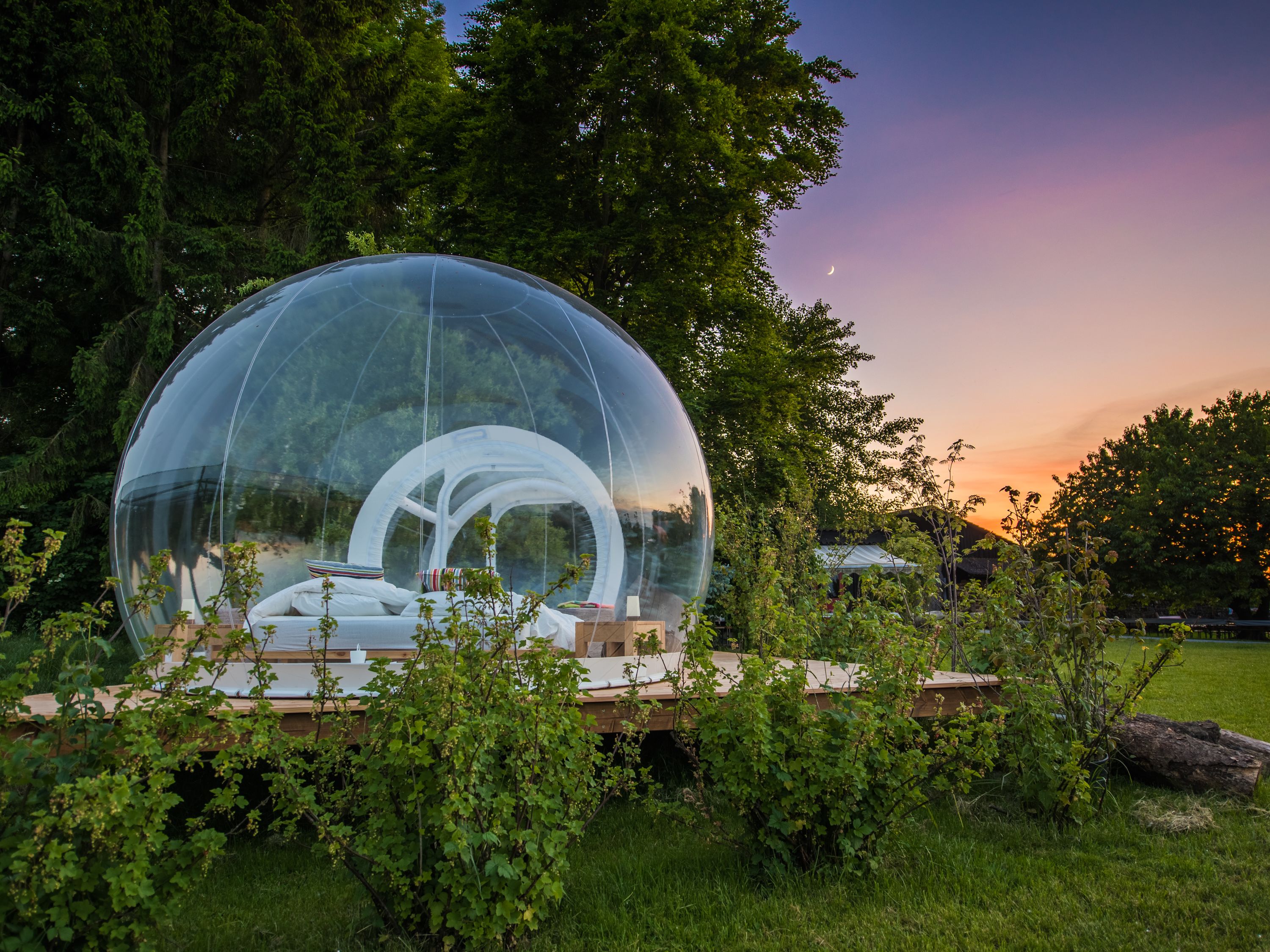 Heubodenzimmer mit Hotpot unter den Obstbäumen